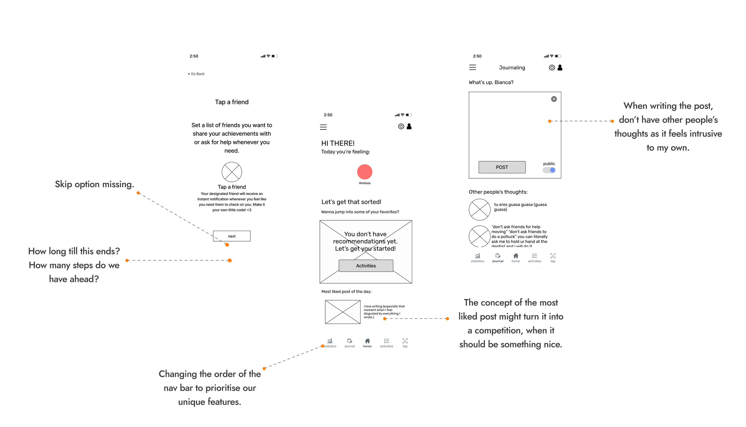 The option of making the Journaling private or public, and the tap a friend feature, where you can set a list of friends and just with one click they will receive a notification with a customise message.