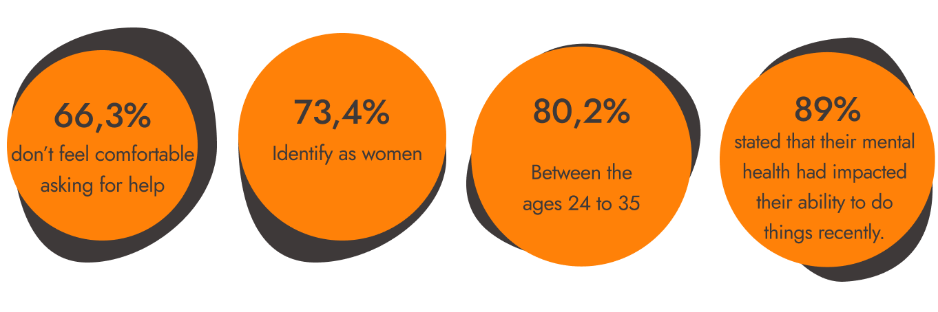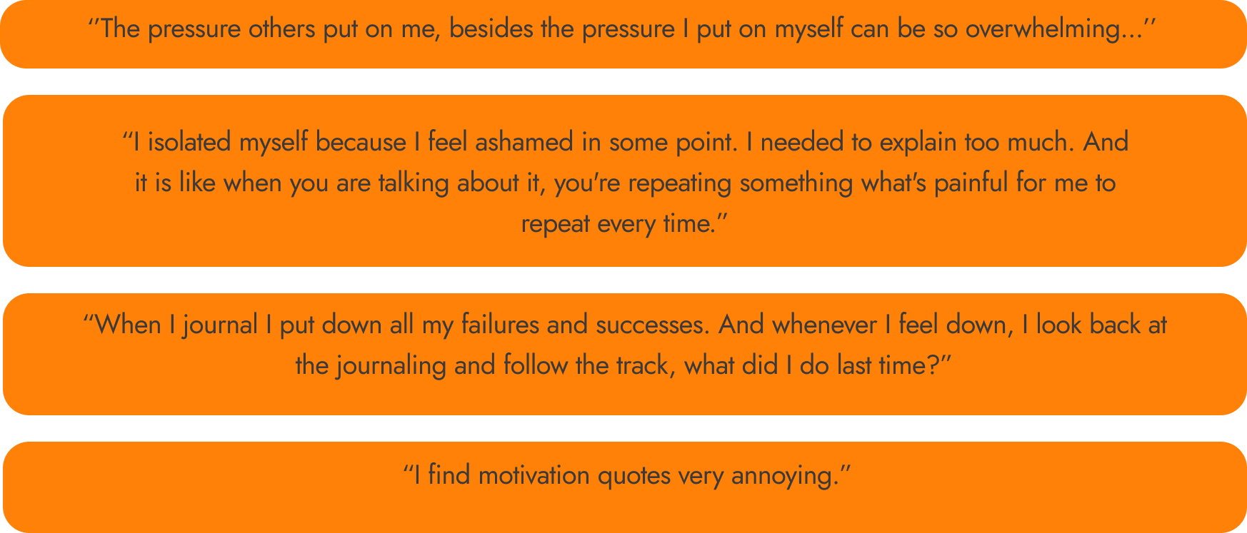 We interviewed 8 possible users of Hapeee: young people between the ages of 25-50, that struggled or is currently struggling with their mental health. Also people who is not sure about what is happening to them.